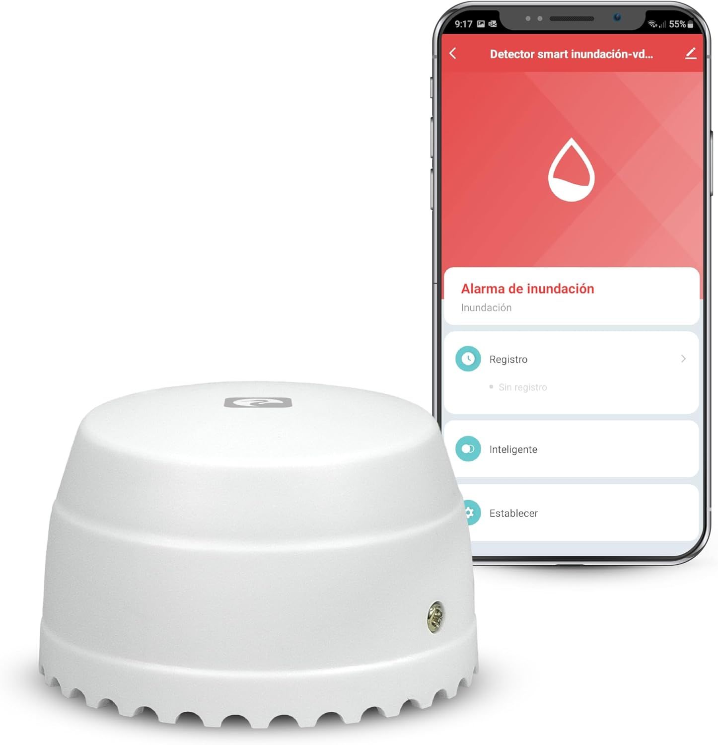 Detección precisa de fugas: Compuesto por dos polos casi a ras de suelo que, al entrar en contacto con el agua, cierran el circuito eléctrico y activan la alarma de forma inmediata.- Portátil y fácil de colocar: Funcionando con pilas, el dispositivo se puede colocar directamente en el suelo, cerca de fuentes de agua como cañerías, bañeras, lavadoras, lavavajillas o en áreas propensas a inundaciones, como sótanos, garajes o bajos.