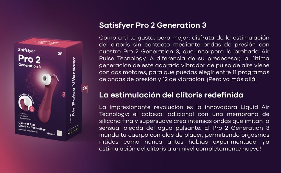 ORGASMOS DEL SIGUIENTE NIVEL: Satisfyer Pro 2 Gen 3: Vibrador de ondas de presión silencioso con la revolucionaria tecnología Liquid Air para los clímax más intensos.