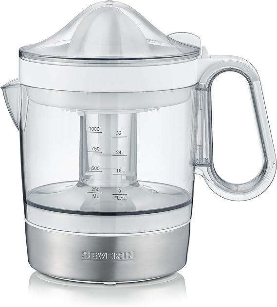 SEVERIN Exprimidor 40 W, Exprimidor Eléctrico con 2 Conos Extraíbles, Depósito XXL 1 L, Accesorio de Cocina para Zumos Recién Exprimidos, Blanco, CP 3535