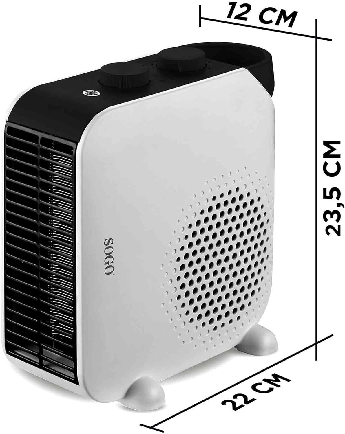 Calefactor bajo consumo de Sogo puede usarse en posición vertical u horizontal, lo que te da la libertad de colocarlo como mejor te convenga en tu espacio. Además, cuenta con protección contra sobrecalentamiento para garantizar tu seguridad en todo momento. Su asa de transporte te permite moverlo con facilidad y comodidad, añadiendo un extra de seguridad- Radiador electrico bajo consumo con dos opciones de calor, 1000W o 2000W, ofrece flexibilidad y comodidad para calentar cualquier espacio según tus necesidades. Ya sea una habitación pequeña o un área más grande, este calentador te cubrirá, ya que puedes dirigirlo directamente hacía personas y no calentar el espacio vacío